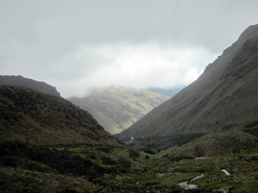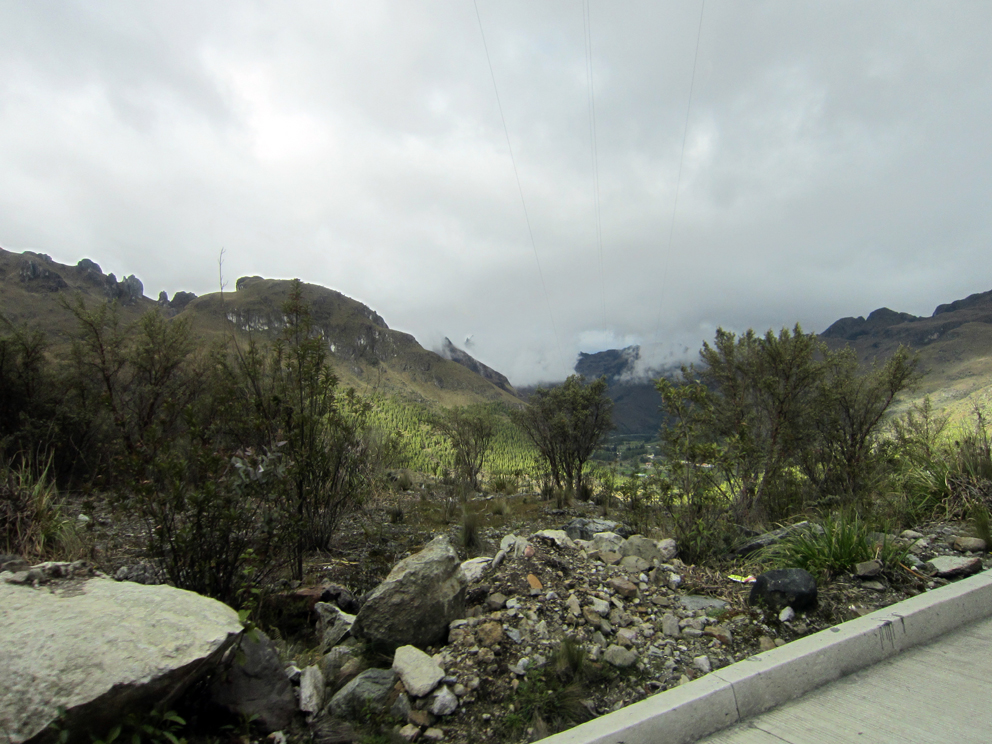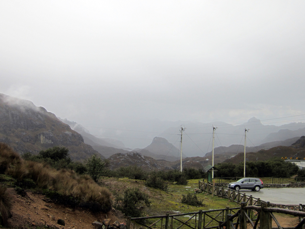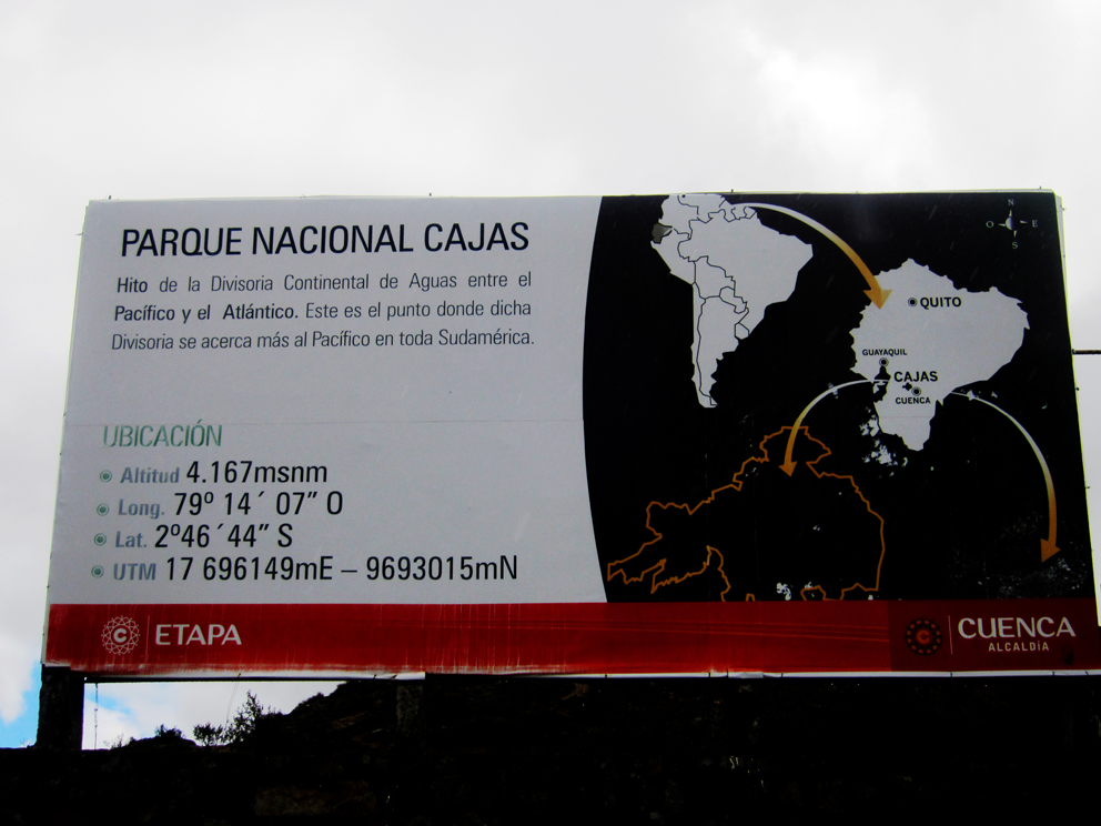 Nach meiner Lima-Reise war ich mit Edda Mitte April noch einmal bis zur Pass-Höhe unterwegs. Leider war auch diese Mal das Wetter nicht ideal. Auf der Passhöhe (4.167m) waren es nur noch 5° und es gab Nieselregen mit schlechter Sicht. Der Pass bildet die Wasserscheide zwischen dem Pazifik und dem Atlantik. Im Nationalpark befinden sich die Quellen der beiden Flüsse Tomebamba und Yanuncay, welche durch Cuenca fliesen. Sie sind Zuflüsse des Amazonas, der in ca. 3.300km Entfernung in den Atlantik mündet.