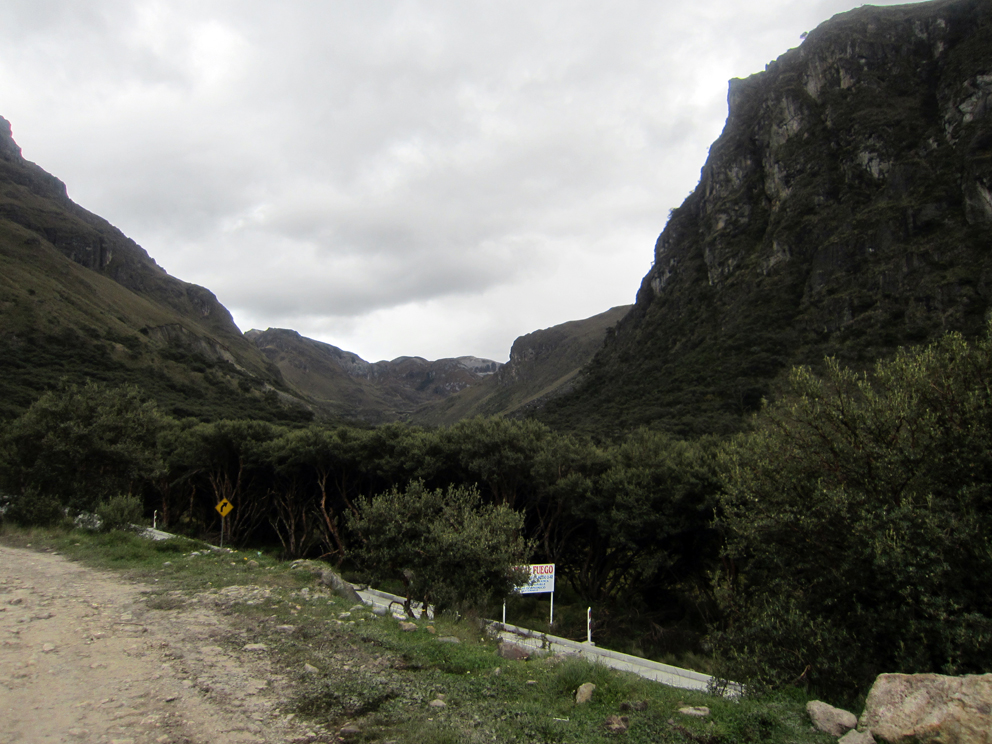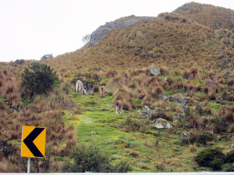 Die Straße (E582) von Cuenca nach Guayaquil führt quer durch den Nationalpark – und ist ein Erlebnis für sich. Von Cuenca (ca. 2.500m) führt die Strecke über den Pass „Tres Cruces“ (4,167 m) in die Pazifik-Tiefebene. Luftlinie: Cuenca – Tiefebene ca. 60km, Pass „Tres Cruces“ – Tiefebene ca. 32km. In einer ¾ Stunde Fahrtzeit von Cuenca auf die Passhöhe – in einer ¾ Stunde Fahrtzeit von knapp 4.200m auf nahezu Meereshöhe – ich habe es ohne gesundheitlichen Probleme überstanden. Wenn schönes Wetter ist, dann hat man einen herrlichen Blick über die Tundralandschaft mit den zahlreichen Seen und auf dem rund 150km entfernten Chimborazo. Wenn man Glück hat, dann besteht auch die Gelegenheit Lamas in freier Wildbahn zu beobachten. Der Nationalpark ist ein ideales Wandergebiet. Überall am Straßenrand befinden sich Warnschilder vor Lamas – und erstaunlicherweise auch vor Radfahrern.