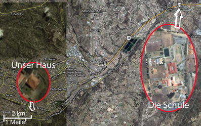 Eine 3-spurige Schnellstraße verbindet unser Haus mit der Schule – mit dem Taxi sind