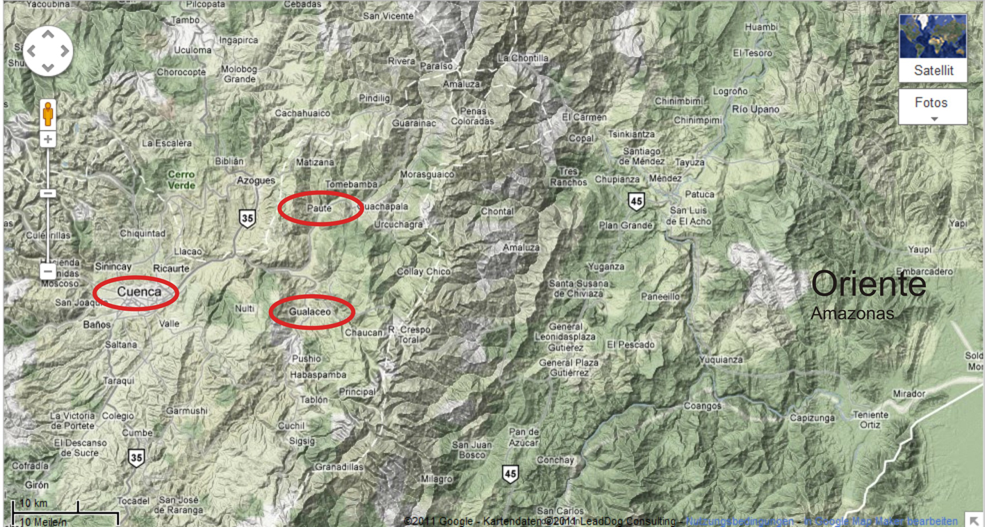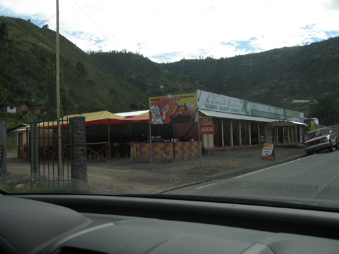 Die nächsten Bilder sind stammen aus der Gegend von Gualaceo und Turi. Die beiden Städte liegen etwa 20 km östlich von Cuenca im östlichen Andenzug. Der ecuadorianische Ehemann einer Deutschen Kollegin betreibt in Gualaceo ein Restaurant mit teilweise deutscher Küche. Wir hatten Gulasch mit Kartoffel- bzw. Semmelknödel. Der Nachtisch: Käsekuchen. Ich habe mir ein 1/2 Radlermaß gegönnt! Es hat wie in Deutschland geschmeckt. Obwohl die beiden Städte nur 20 km von Cuenca entfernt liegen war es etwa 5 Grad wärmer. In der Sonne sollte man nicht länger als eine Stunde bleiben: Sonnenbrandgefahr! Unterwegs immer wieder die Grillstände mit Spanferkel, gegrillten Hühnern und Cuys (Meerschweinchen).